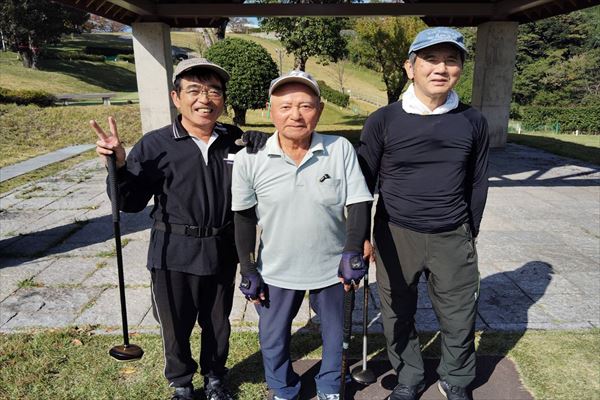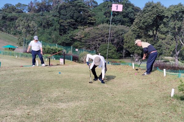 今年度のパークゴルフ大会を、爽やかな秋空のもと11月16日に 串木野パークゴルフ場で19名の参加で開催しました。 パークゴルフはクラブ1本とボール1個でプレーでき、年齢・性別・経験の 有無に関係なく誰でも気軽に楽しむことが出来ます。当日も家族連れなど、 沢山の方がプレーを楽しんでおられました。 競技は、4コース36ホールで行われ、後半の登り下りの多い難コースに 苦戦しましたが、ホールインワンに3名成功するなど白熱したなか元気に 和気あいあいと過ごしました。 優勝はホールインワンを出した黒川忠満さん、準優勝は山下又志さん、 三位は瀧内文夫さんでした。 (レポーター 金富寛幸) |