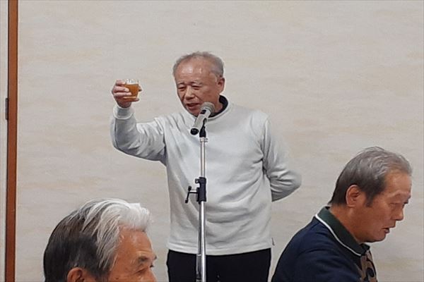 ![]() 今年古希を迎える新地さんの音頭で乾杯 |