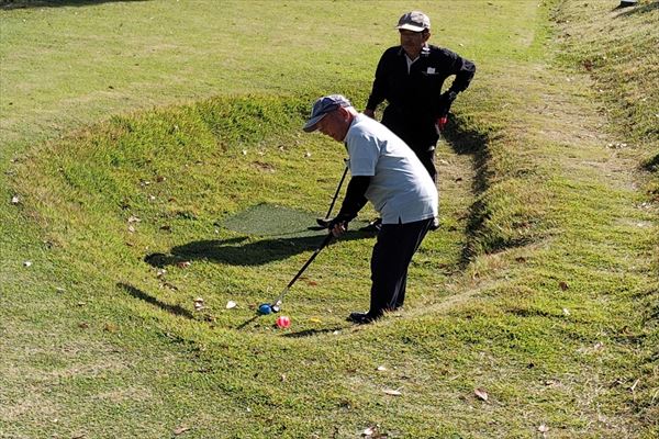 ![]() マイクラブ持参の吉満さん よく飛んでいる |